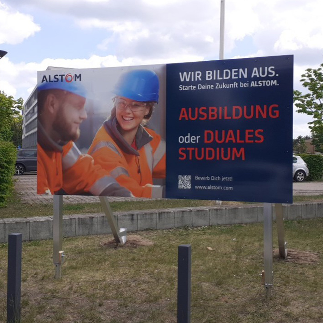 Aluverbundplatten (z. B. Dibond): Robust, wetterbeständig, in weißer oder gebürsteter Oberfläche, ideal für Außenwerbung wie Firmenschilder oder Fassaden.