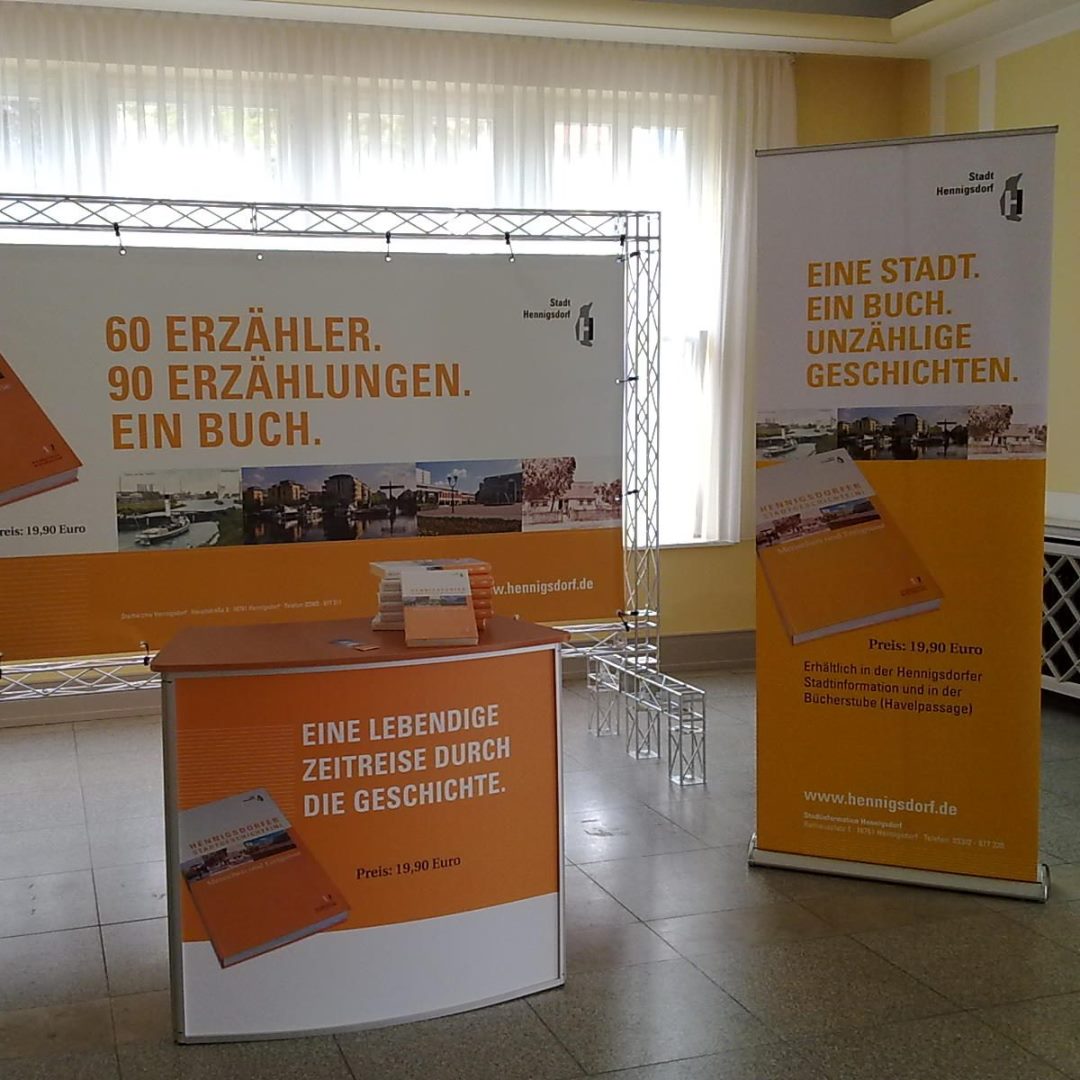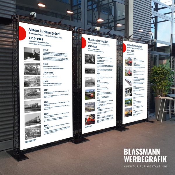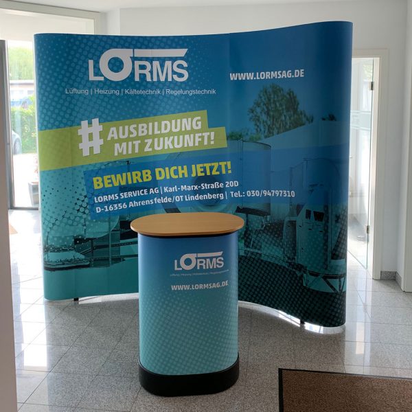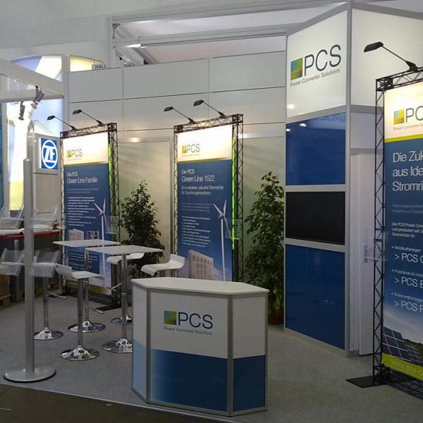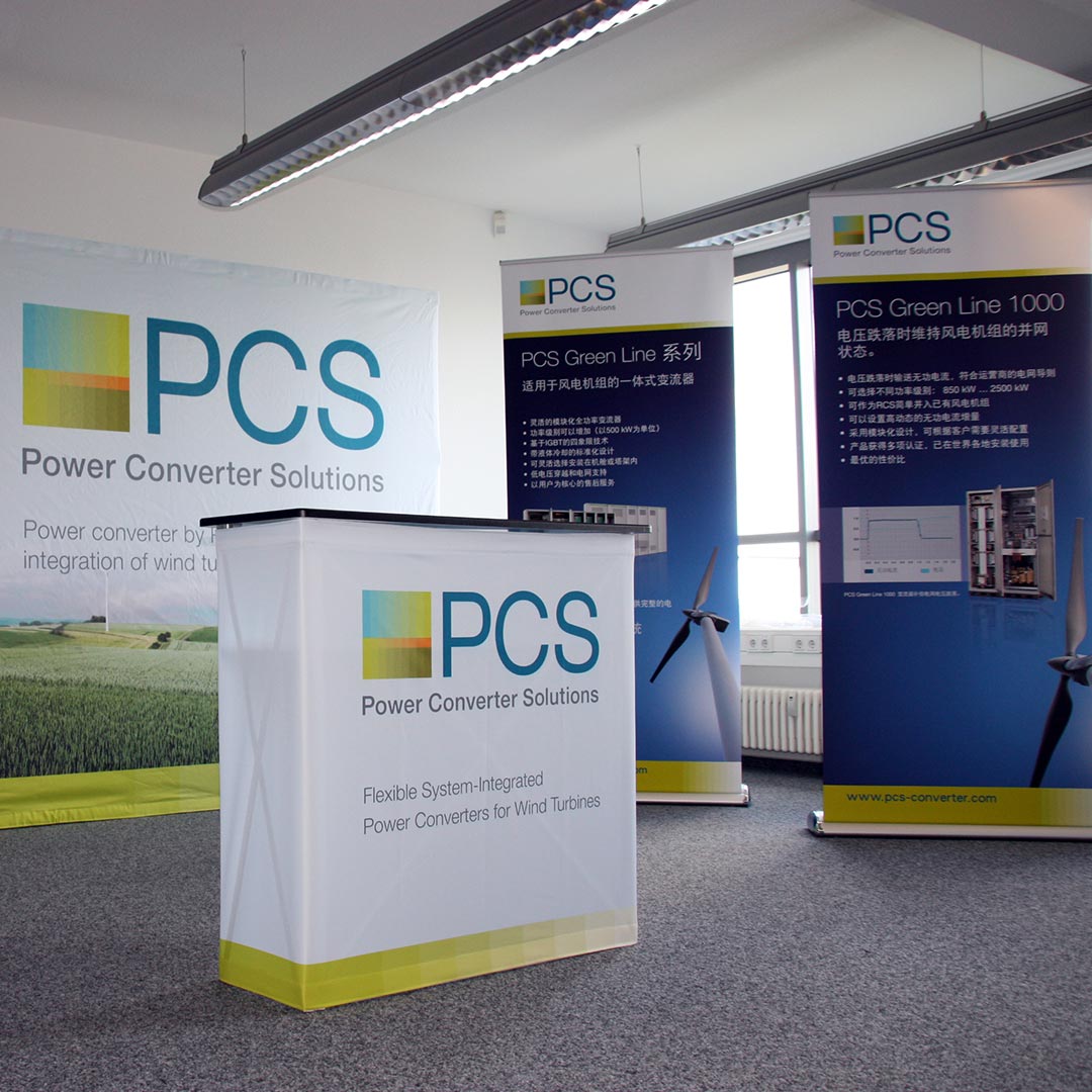 Messe- und Ausstellungssysteme wie Roll-ups, Banner-Displays, Truss-Systeme  und modulare Messestände.